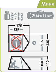Габаритные размеры внутренней палатки, см (l x b x h) : 125 х 215 х 100