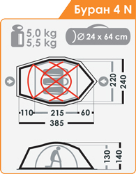Масса палатки, кг (мин/макс): 5,0 / 5,5