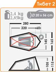 Габаритные размеры внутренней палатки, см (l x b x h) : 215 х 125 х 95