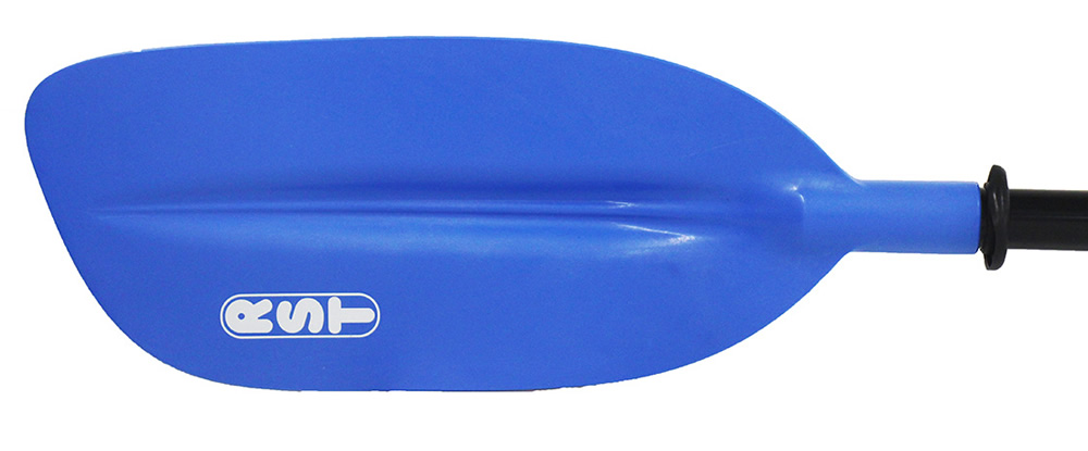 Весло разбирается на 2 части и имеет два разворота лопасти. При сборке весла соединяются кнопочным фиксатором. Для изготовления лопастей весел используется высокопрочный полиэтилен. Размер лопасти - 19 х 47 см.