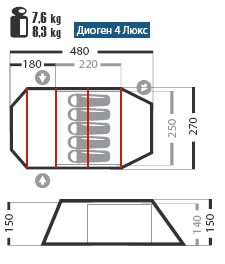 Двухслойная четырёхдуговая полубочка с подвесной внутренней палаткой и большим тамбуром.